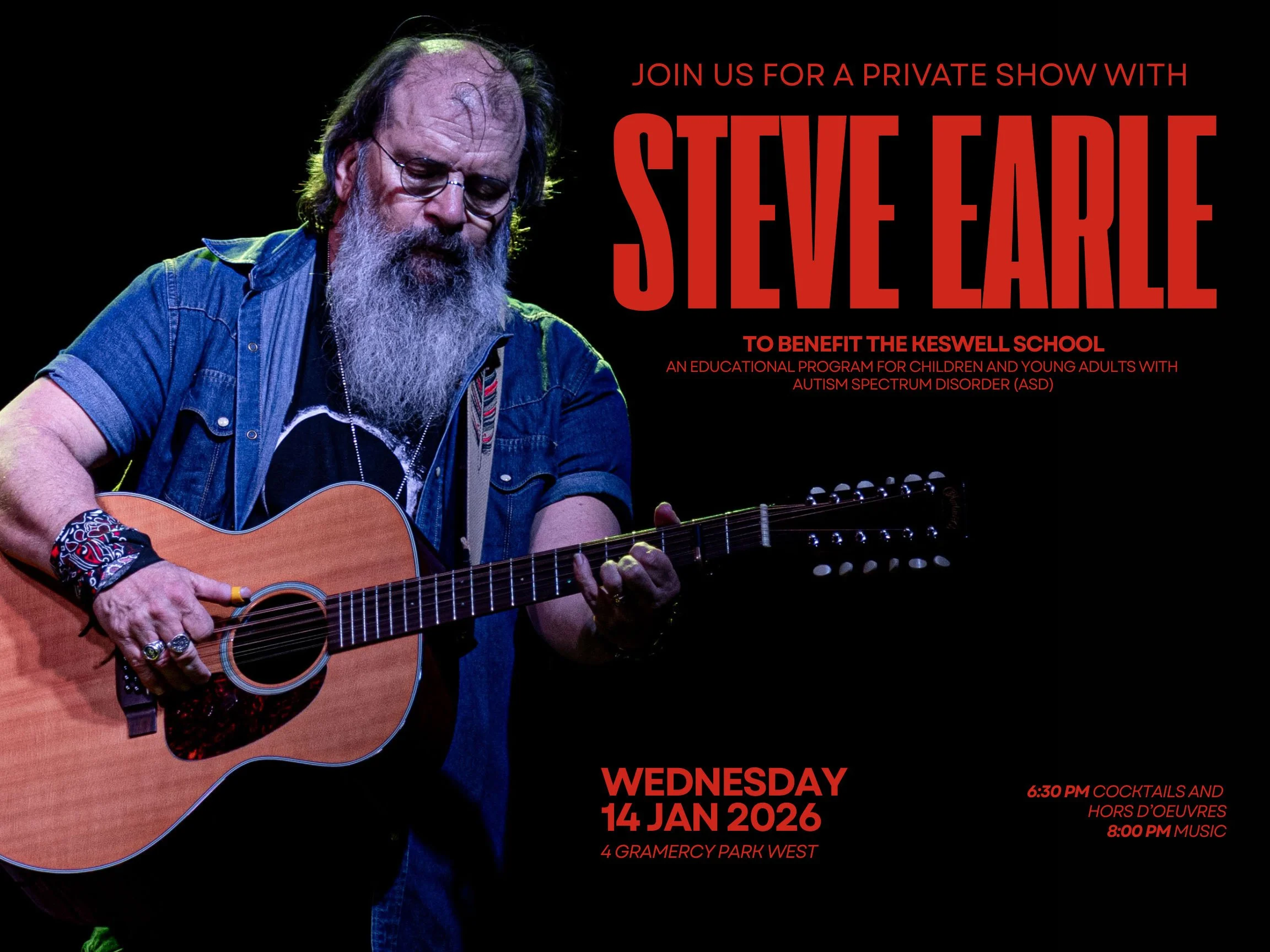 Harper House Music Foundation presents an intimate Steve Earle performance to benefit The Keswell School, an educational program for children and young adults with Autism Spectrum Disorder (ASD).